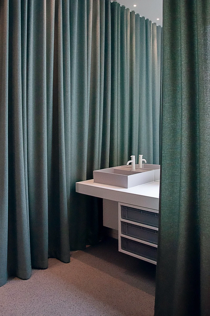 Der für viele wohl emotionalste Raum streichelt die Sinne: Untersuchungsraum. Weiche Stoffe, gedämpftes Licht, sanfte Farben. Kleine Streicheleinheiten für aufgeregte Sehtester.