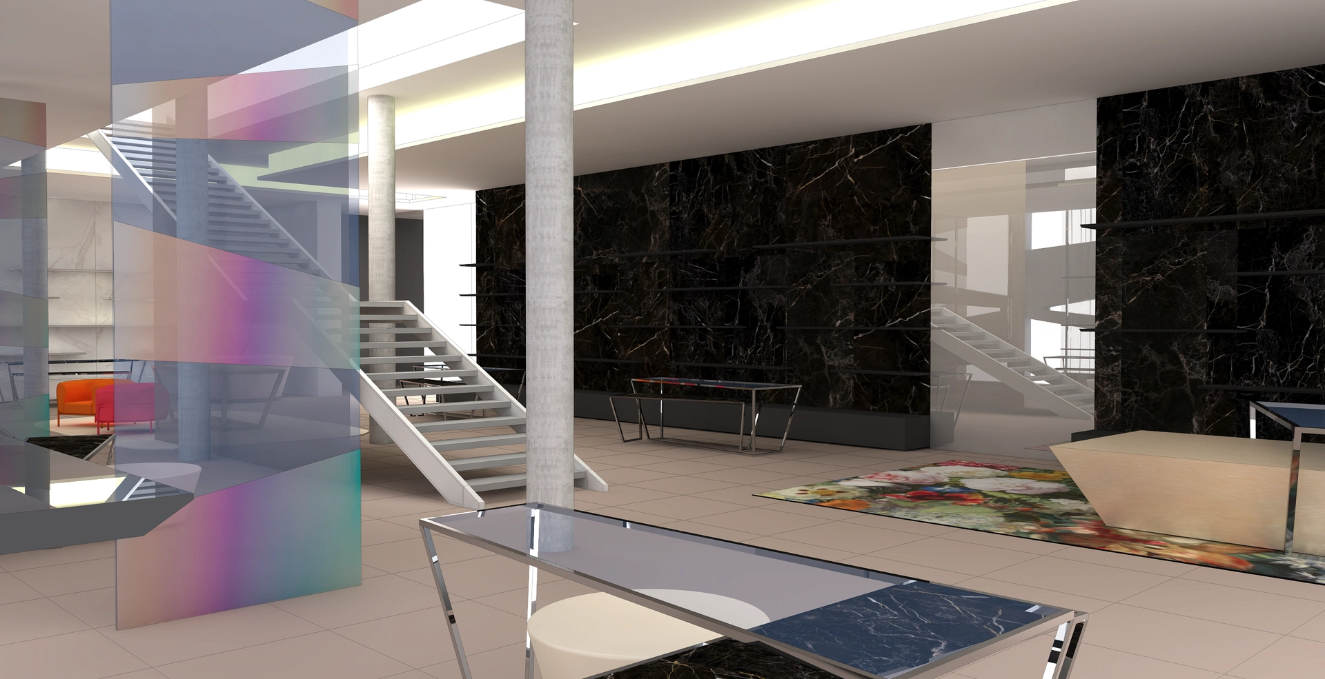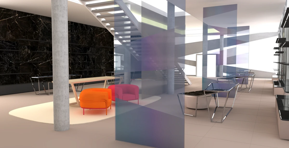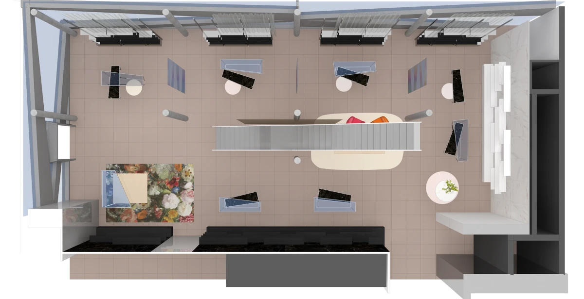 Dynamik, Glanz, Gloria und Charakter schaffen eine Atmosphäre, die »Wow!« sagt, ohne einzuschüchtern. Funktion und Wirkung müssen tanzen dürfen. Inspirierende, formschöne Mittelmöbel laden ein. Farbig changiertes Glas gliedert den Raum, ohne ihn zu blockieren. Wie auf dem Marktplatz. Luxusmarkt.