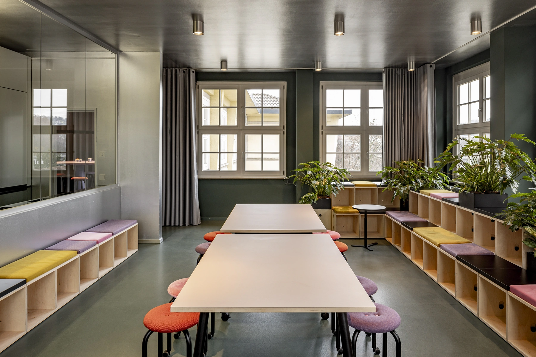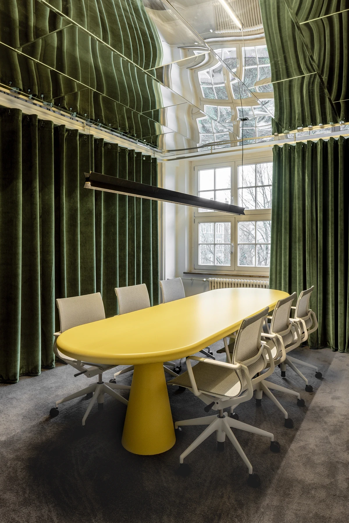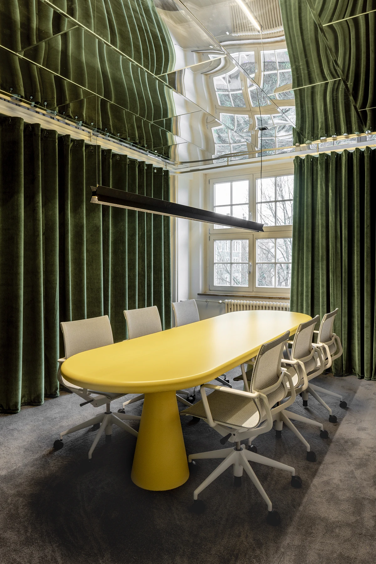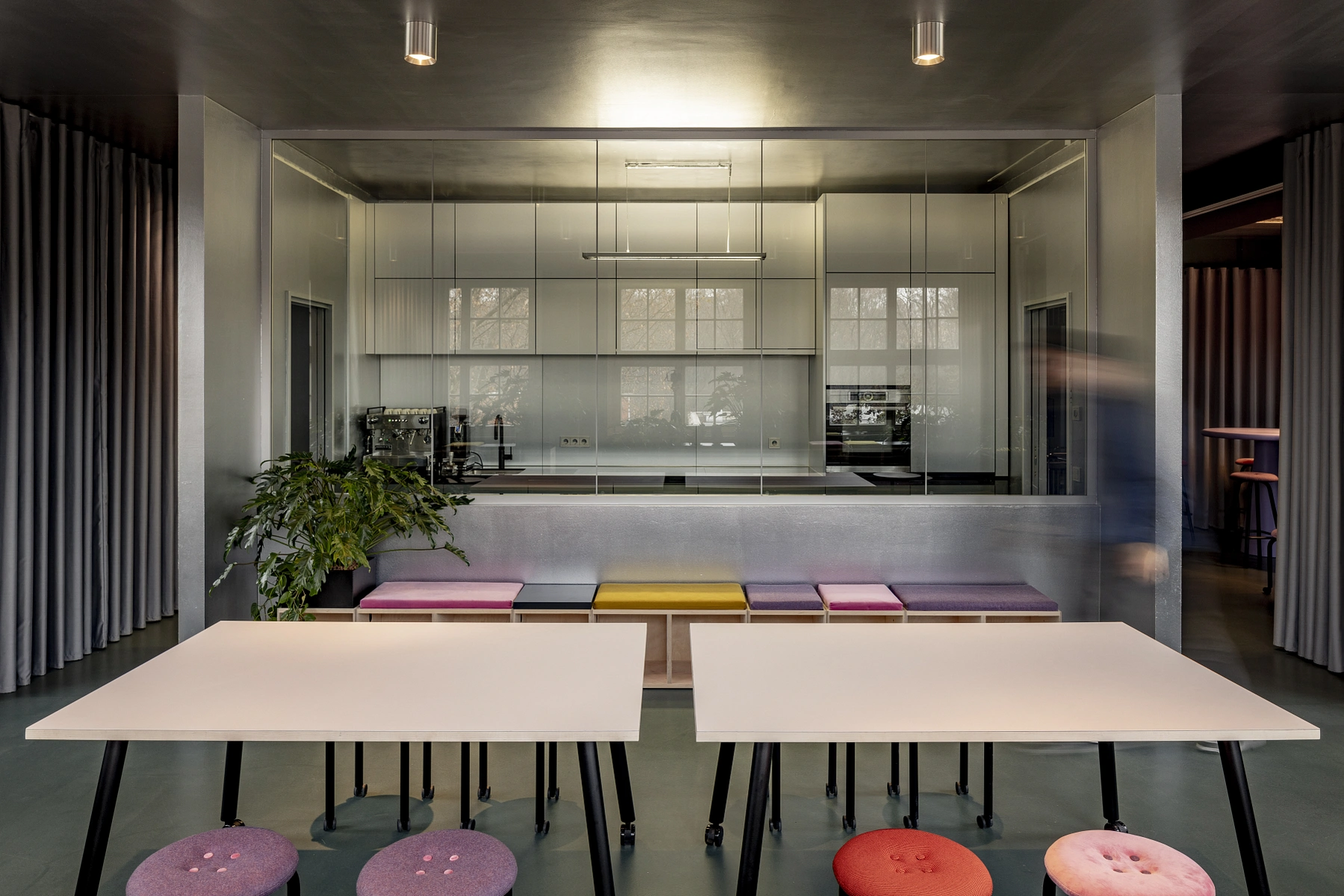 Unsere Mission: Kreativität und Mehrwert. Wir haben das Herz der Agentur reaktiviert: »Hallo, wer erwartet Sie denn heute?« – der Empfang. Wartebereich und angegliederter Besprechungsraum, das Casino der Mitarbeiter*innen, Küche, angrenzende Teamflächen … der Bestand wurde durch neue Möbel erweitert. Von wechselnden Bodenbelägen, Farben, Vorhängen, Materialien … lebendig, gefühlvoll. Kreativität braucht Möglichkeit. »Boom!«